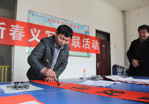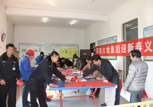 (本报讯)2月10日上午,农历甲午年腊月二十二,大地公司中控办公楼一楼烧成车间会议室内,翰墨飘香,欢声笑语,大地集团在这里隆重举行迎新春义写春联活动。 在传统乙未年农历新春佳节到来前夕,大地集团在妥善安排好职工年货的基础上,非常重视幻影体育(中国)官方网站建设,邀请部分国家级和省级书法家协会会员到集团开展义写春联活动,活跃幻影体育(中国)官方网站,营造新春气氛。此前,集团提前安排专人购买了笔墨纸砚和红纸,并结合企业发展现状,拟写了部分喜庆、新颖、励志、接地气的新春楹联内容,使职工在欢度新春佳节的同时,提振士气,爱岗敬业,立足岗位做贡献。
