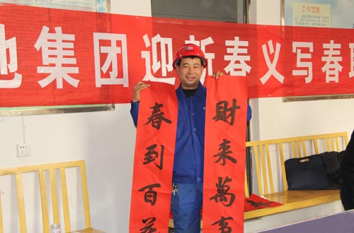 “大地水泥筑起万间广厦,富平春酒情暖四海宾朋”。在义写春联现场,书法家们凝神静气,挥毫泼墨,挥就一幅幅精彩的书法作品。充分表达对员工的美好祝愿和温馨祝福,传递企业的关爱与温暖,令广大员工无比欣慰,满心欢喜,400多幅寓意吉祥如意、幸福安康的春联被一抢而空。