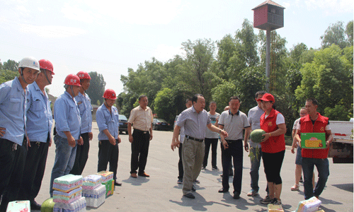 718日上午,县总工会主席郭鹏飞一行人冒着酷暑,为集团送来了清凉,受到集团职工热烈欢迎。