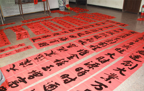 随着春节的临近,1月26日上午,宝丰县香山书社登录入口集团开展义写春联活动,提前送上新春祝福,受到广大职工的热烈欢迎。这是多年来,大地集团与宝丰县香山书社联手,让书法走进企业,让艺术助力幻影体育(中国)官方网站建设的又一活动。 虽然外面冰天雪地,大地集团一楼会议室却热闹非凡,翰墨飘香,写春联的案桌围满前来欣赏的职工们,有的在精心挑选自己喜欢的春联,有的主动帮忙叠红纸、扶春联、晾春联, 现场一片欢声笑语,喜气洋洋。书法家们屏气凝神,挥毫泼墨,一幅幅行云流水、遒劲有力、潇洒俊逸的书法作品跃然纸上,象征着吉祥、喜庆、富贵,平安的春联,赢得大家的交口称赞和争相索要。半天功夫,300多幅春联被一抢而空。 “毛笔写的春联更有意义、更有年味”。一位员工拿着刚写好的春联爱不释手。此项活动不仅传递着广大员工对新年的美好期盼,也让员工感受到集团的人文关怀,营造温馨和谐的新春文化氛围。 义写春联现场