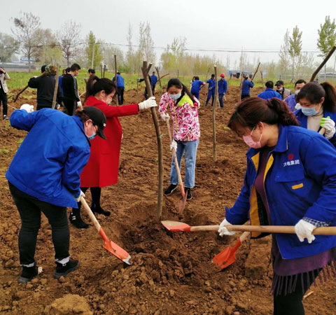 在大香山森林公园植树现场,各公司、各部门人员热情高涨、干劲十足,挥锹培土、踩实夯苗、围堰浇水,每个环节都做得一丝不苟,彼此配合默契,衔接有序。特别是财务部的“娘子军”,不怕脏累,不甘示弱,她们三人一组,五人一群,或扛,或抬,冲在前面,忙得不亦乐乎。到处一派热火朝天的劳动场面,整个过程充满欢声笑语。