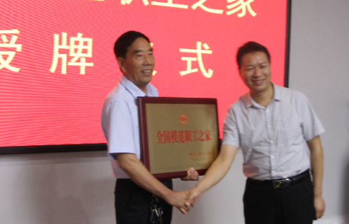 7月7日上午,市总工会副主席刘夙凯,组织部部长郭强,县总工会主席、四级调研员崔建利,县四级调研员张艳峰等一行到大地公司为公司“全国模范职工之家”授牌,副总裁崔书箱、董事长助理周俊海等领导及部分职工代表共同参加授牌仪式。