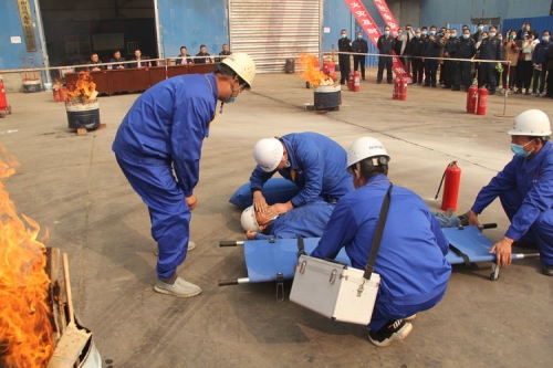 随后,按照消防应急演练预案,总指挥魏建敏宣布演练开始,应急抢险组、医疗救护组、后勤保障组、警戒疏导组、通讯联络组等迅速就位,模拟火情上报、模拟救护、火灾扑救有序进行,演练过程中,大家配合默契,反应迅速,圆满完成了演练任务。