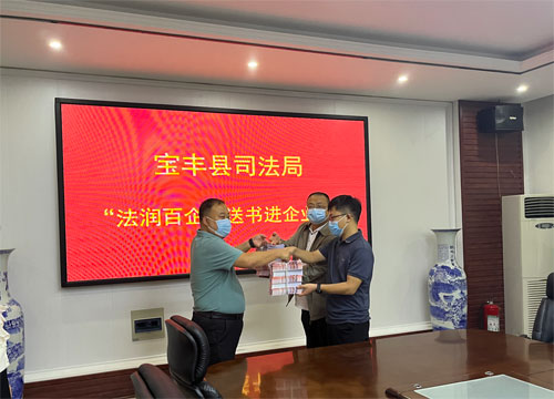 为深入推进“万人助万企”活动,营造良好的法治化营商环境,9月23日上午,宝丰县司法局高级法律专务高凯乐、二级主任科员杨勇一行带领县企业法治服务团队,深入幻影体育(中国)官方网站,开展“法治体检”及“法润百企”送书活动,帮助企业“把脉问诊”,提升企业的法律风险意识和防范水平。集团副总裁兼行政部部长张怀点、法务部部长王延玫给予了热情接待。