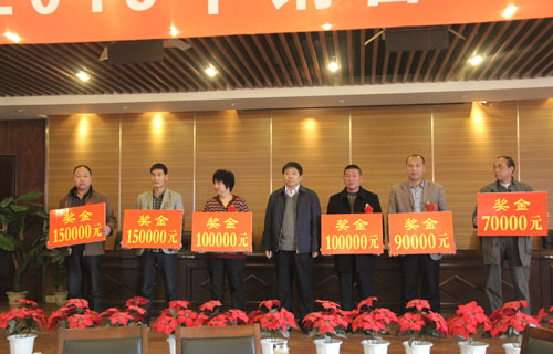 崔泉发总裁与获得二等奖的优秀经销商合影留念