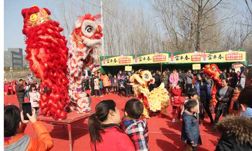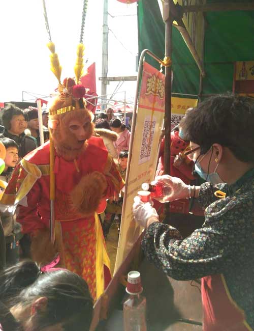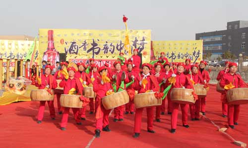 正月十三,笔者还未走到马街,就被一阵喧天的锣鼓声所吸引,在富平春酒业二号展台处,形威神俏的舞龙舞狮、阵容强大的女子盘鼓队、搞笑二人传、经典民歌等节目精彩纷呈,轮番上演,整个现场被围得水泄不通,大家纷纷拿出手机进行扫描,在得到大奖的同时尽享视听盛宴。这是大地集团旗下的富平春酒业给广大群众献上的一道丰盛的艺术文化大餐。大鹏展翅、五朵金花等盘鼓节目变化万千,不时赢来阵阵掌声。高难度高强度的“狮子走梅花桩”表演让人惊心动魄,使现场高潮迭起,顿时,掌声、笑声、欢呼声响彻一片,这里成了一片欢乐的海洋。