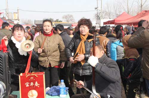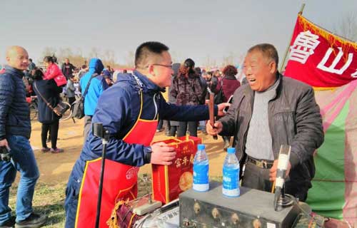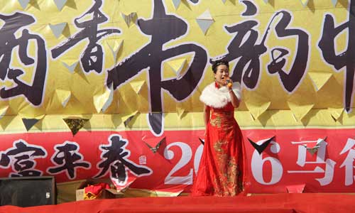 在通往会场的主干道上,跨路挂起的460只刻有“富平春”的大红灯笼格外引人注目,为书会增添了喜庆欢乐的气氛。随着人群,笔者来到会场中心的说书现场,刚好碰上富平春酒业的领导正在为各个说书摊点免费发放F系列酒,这是富平酒业推出的又一献情活动,成为今年马街书会的又一大亮点。无酒不成书,诗酒趁年华,广大说书艺人以酒助兴,在说唱的间隙,酌一杯美酒下肚,那感觉就像李白斗酒诗百篇,说唱起来妙语连珠,栩栩如生,如潮水一般奔腾倾泻,幽默风趣,引人入胜。