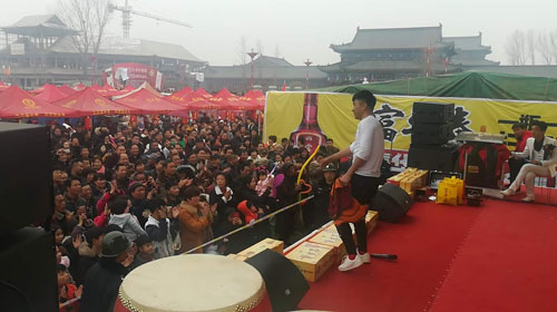 2月27日(农历正月十二)上午,笔者准备赴马街一游。刚到路口,就被“七百年书韵唱响中国梦,九千岁贾湖再现富平春 ”“大地集团预祝2018马街书会圆满成功”的大红氢气球和条幅吸住了眼球。在富平春酒宣传2号展台前,围满了前来品酒、扫码的群众。“今天真得劲!还未到马街就中了一瓶好酒”一位中年人高兴得合不拢嘴。