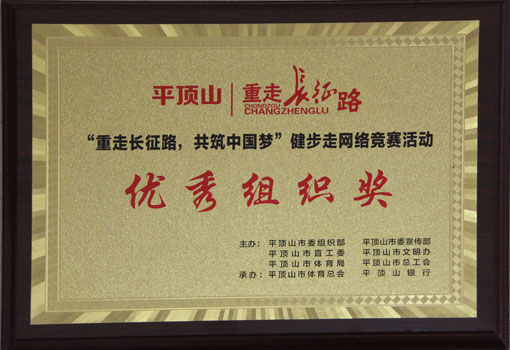首页 >> 登录入口 >>资质荣誉 >> “重走长征路,共筑中国梦”健步走网络竞赛活动优秀组织奖