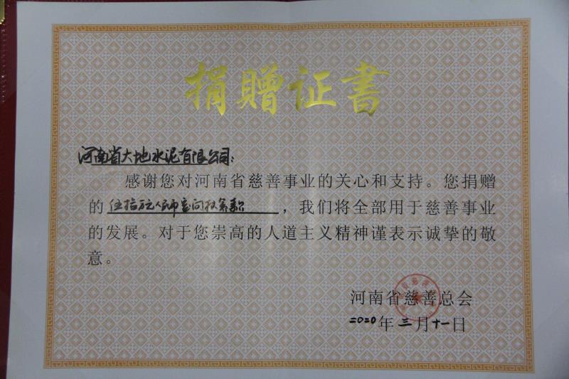 河南省大地水泥有限公司向河南省慈善总会捐款50万元