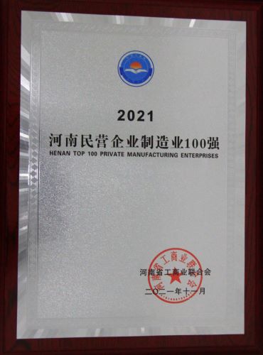 首页 >> 登录入口 >>资质荣誉 >> 河南民营企业制造业100强