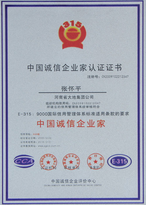 首页 >> 登录入口 >>资质荣誉 >> 中国诚信企业家