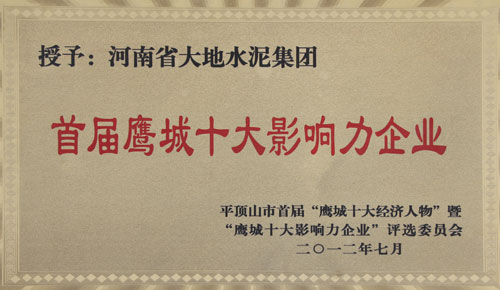 首页 >> 登录入口 >>资质荣誉 >> 首届鹰城十大影响力企业